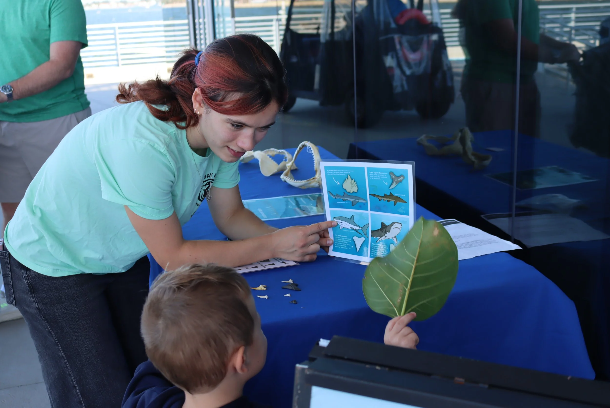 Our volunteers may also host educational activities right outside the Discovery Center’s doors, or within the exhibit gallery, in the form of tabling! This involves engaging with St. Pete Pier visitors about the topics on display in our facility and Tampa Bay Watch’s work.